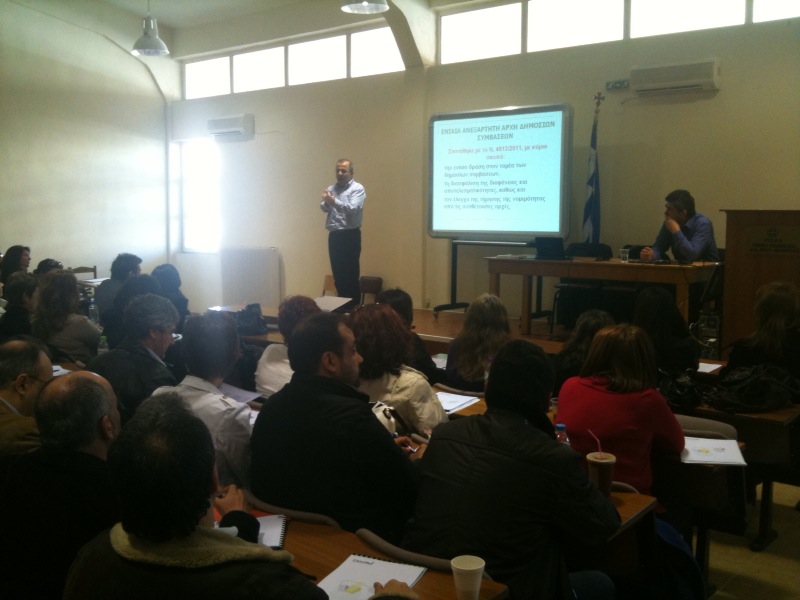 Η επιμορφωτική δραστηριότητα της εταιρείας συνεχίστηκε με επιτυχία, την 1η μέρα του Απριλίου, στα Τρίκαλα αυτή τη φορά, στο κέντρο δια βίου μάθησης του Δήμου Τρικκαίων, με θέμα τις αλλαγές στην διαδικασία ανάθεσης και τη νομιμότητα των δαπανών των Ο.Τ.Α.